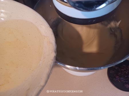 3. Add the starter gradually alternating with the flour mixture. Mix until just combined. Don’t overbeat. It’s okay to have some flour on the side of the bowl. We can fold that in manually with a spatula. Lastly add the raisins.