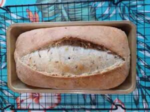 I usually bake my sourdough bread in a Dutch oven. I love the dramatic and artistic look of it. Sometimes I get dramatic ear from the oven spring and that perfect scoring on the bread. There are days when I just want the convenience of baking in a loaf pan without having to lift the heavy Dutch oven. So here’s what I like about baking sourdough bread in a loaf pan: