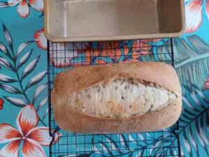 - Gently shake it out from the loaf pan and let it cool on the cooling rack completely. Do not attempt to slice into a hot or warm bread