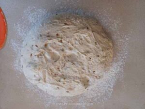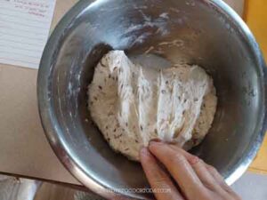 - Repeat this stretch and fold 3 more times, every 30 minutes. You will notice that the dough is getting tighter now, which is normal as the gluten is developing.