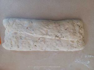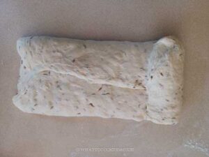 - From the long side of the dough, fold the top side down and the bottom side up to meet in the middle.