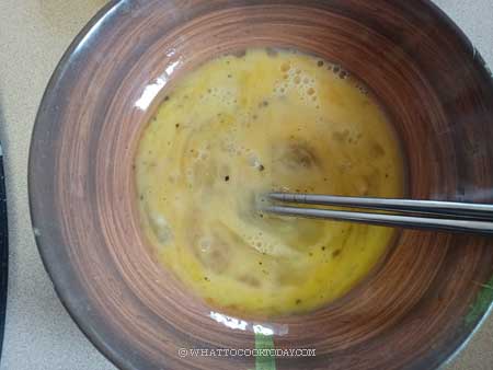4. Lightly beat the eggs with salt and sugar using a chopstick or a fork.