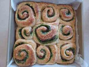 Home >> Western Bread >> Soft & Fluffy Spinach Pesto Ham Bread Rolls (Potato Dough)