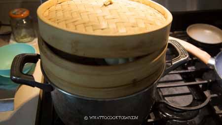 - Proceed with the next batch and steam with the same method and setting as I mentioned above. You don't have to wait for the water in the steamer to cool down to start. Just turn on the stove to medium heat, crack the lid open immediately and the time starts when water is back to a simmer again