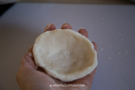 Then carefully pour in some of the beaten egg. Try not to fill too much (at least not on the first try) or you will have trouble sealing the dough