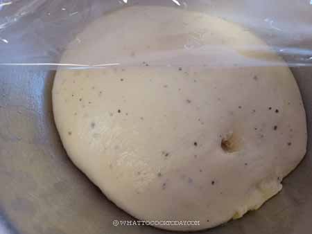 - Place this dough in a lightly oiled large bowl, cover it with a clean and damp tea cloth or plastic wrap and let it rise at a warm place until almost double or double in size. This may take about 1 hour or longer depending on temperature.