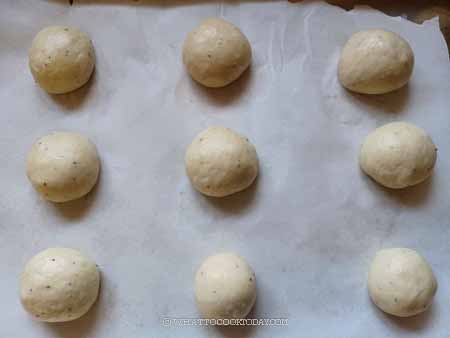 9. Let them proof again for another 45 minutes to 1 hour, depending on the temperature, or until they are really puffy.10 minutes before the end of proofing, preheat the oven to 400 f (200 C) for conventional oven, 375 F (190 C) for convection oven