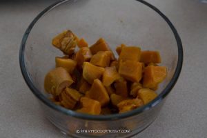 - Cut the potato into half and remove the skin, scrape the flesh into a food processor and add about 2 teaspoons of water and process into a smooth puree