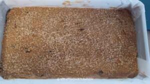 - Scrape the batter into the prepared pan and use a flexible spatula to help you spread it evenly across the pan. Sprinkle with some turbinado sugar
