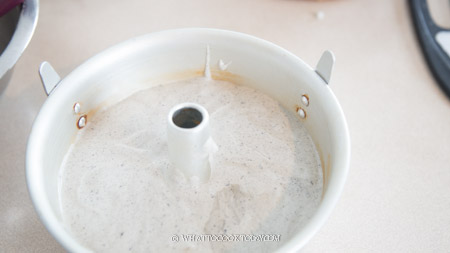 1. DO NOT grease your chiffon pan, not anywhere on the pan. The cake needs to cling to the pan to rise.