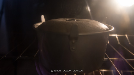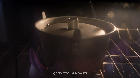 11. Pop into the oven and let it bake for 60 minutes on the middle rack. The cake will gradually rise slowly. If you insert a skewer or cake tester into the cake, it should come out clean with very few crumbs, but there shouldn’t be anything wet. If it is, bake it a bit longer, in a 5-minute increment and check again