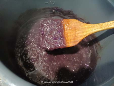 This is optional. The addition of the extract really turns the champorado a lot more purple. So, don’t use too much