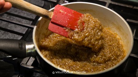 It should turn very sticky and no more visible liquid. You can have a taste and see if it’s sweet enough for you. Add more sugar if you need to and continue to cook until sugar melts and absorbs by the rice, may take about 10 minutes or so.