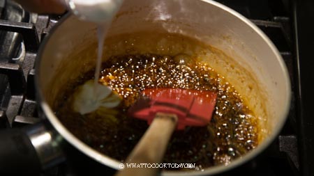 Stir in the coconut cream. Do not boil the coconut cream or it will “break” and make the mixture frothy.