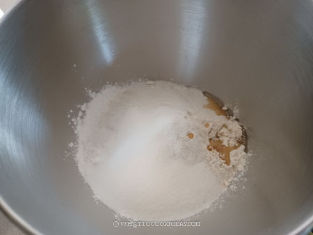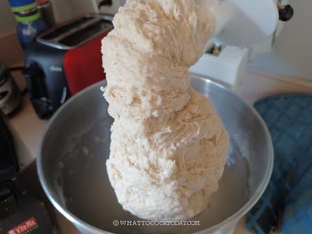 - Place the flour/starch combination, instant yeast, sugar, salt, and oil in a mixing bowl. If you are using a stand mixer, use a dough hook attachment. Add cold milk or room temperature water. Start with 180 ml and add more until you can form a dough. You will most likely need to add more milk/water if the dough is still a bit dry. I would rather you start with the lowest amount of liquid and add more teaspoon by teaspoon until it comes into a rough dough