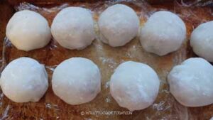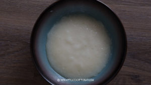 Mix all ingredients for mochi dough in a mixing bowl. Make sure it's smooth and no lumps. Strain the mixture if necessary.