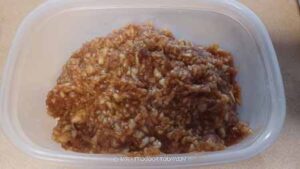 Stir fry about 2 Tbsp of glutinous rice flour on a dry pan over low-medium heat until the flour is very lightly golden in color and smells slightly nutty. Remove from the heat to let it cool down. This can be prepared few days ahead and stored in an air-tight container once it has cooled down completely