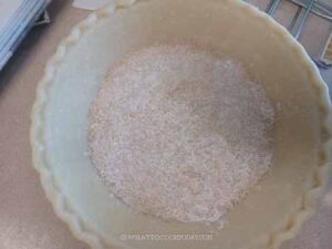 Scatter this evenly to the bottom of the pie crust. This creates a "barrier" that helps to prevent a soggy bottom.