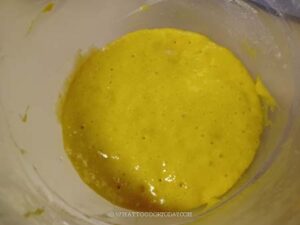 Place the pan in the middle rack and bake for 30 minutes if you bake using an 8-inch pan, and about 25 minutes if you use 9-inch pan. The top should be golden brown and if you insert an instant-read thermometer into the center of the cake, it should be 190 F (88 C)