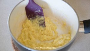 Gradually stir the warm milk into the egg mixture while whisking at the same time until well combined. Pour this back into the saucepan and turn the stove back on to medium-low heat and continue to whisk until the cream thickens and begins to bubble, about 5 minutes or so.