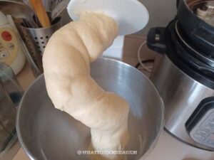 Combine all the ingredients in a bowl of a stand mixer fitted with a dough hook attachment. Turn the mixer to low speed (speed 2 on KA) and let it run until a rough dough is form. Let it knead for another 10 minutes or until the dough is smooth and elastic. Do not crank up the speed. We need to make sure the dough is not overheated, which will melt the butter later.