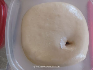 Gently deflate the dough in the container using a lightly oiled spatula. Scoop the edge and fold it to the center to deflate the gas. Round it up into a dough ball and put it back into the container. Cover with a tight-fitting lid and put this in the refrigerator for at least 6 hours or up to 48 hours