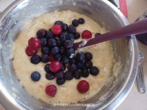You can also use other types of berries. I mixed in a bit of small sour cherries too. If any fruits that you want to use are larger than the size of blueberries, cut them into smaller pieces.