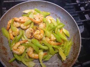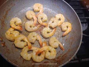 Return shrimp to the wok. Add the seasonings you prepared earlier.Toss everything together for 30 seconds or so over high heat until shrimp are just cooked through and coated with sauce.