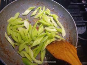 Add a splash of oil if the wok is dry. Stir-fry celery 1–2 minutes until bright green and crisp-tender.