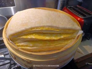 I cut the dough into half in the middle. This is also so that it can fit in my steamer and I can have more layers