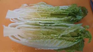Use a sharp knife to split the lettuce in half lengthwise.
