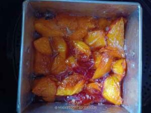 Place the nectarine chunks, sugar, and star anise in a small baking pan and let it roast in a preheated oven at 375 F (190 C) for conventional oven, 360 F (185 C) for convection oven, for 30 minutes or until they are bubbly and the juice is thick. It gets thicker as it cools down.