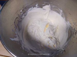 Keep the heavy cream and mixing bowl cold in the fridge. Use a handmixer to whip the heavy cream, powdered sugar, cornstarch, vanilla extract, and a small pinch of salt until the cream forms a firm peak.