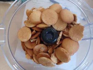 Put the wafers in a food processor and process into very fine crumbs. You can also put them in a zipper bag, push all the air out and seal. Use a rolling pin to crush them into fine crumbs. The crumbs must be fine. The crust crumbles easily if the crumbs are not fine enough