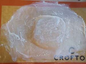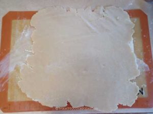 Lightly flour your work surface. Place one pie disk on top. Lightly dust the surface of the dough with some flour.