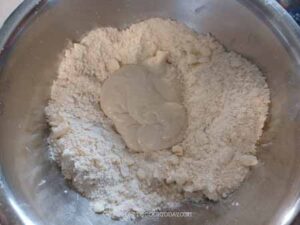 I recommend using a bench scraper to start mixing the butter-flour mixture with the discard by folding and pressing.