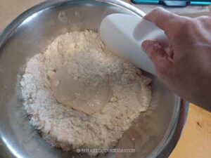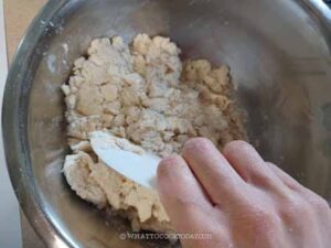 Use your hands to sort of press the dough mixture together to form one crackly dough