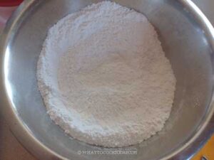 In a mixing bowl, add powdered sugar, mochiko flour, and salt and just mix to combine. Set aside
