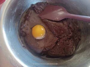 Then add egg, one at a time