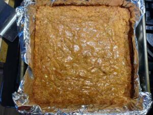 Line an 8×8-inch pan with aluminum foil and spray lightly with non-stick spray. Preheat your oven to 350 F (175 C) for conventional oven. If using convection oven, lower temperature by 20 F (15 C)