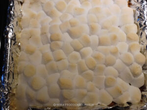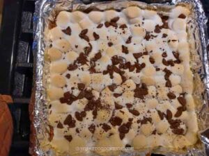 Scatter the remaining dark chocolate over the marshmallow layer and bake for an additional 3 minutes.