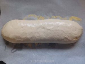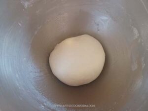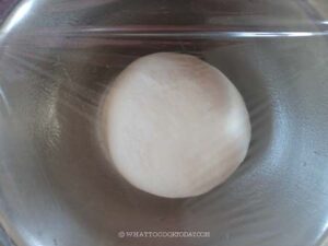 Lightly oil the bowl, round up the dough into a dough ball and put it back into the bowl, cover with a cling wrap. Let the dough rest in the bowl at room temperature (around 78 F/ 26 C) for 30 minutes. It should puff up slightly. It doesn't have to double in size