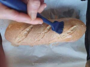 The egg white wash applied after the initial bake gives the bread a nice gloss to the crust. It also helps achieve a thin, crackly crust while keeping the inside soft and airy. It's a simple yet effective step to elevate the texture and presentation of the bread