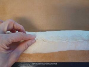 Scatter cornmeal on a parchment-lined baking pan. Place the dough seam-side down on the baking pan