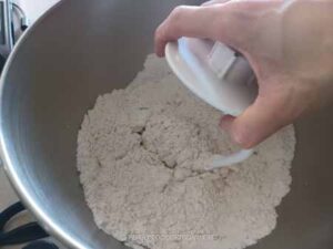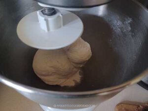 Attach the dough hook and let it knead on low speed for about 5 minutes or until the dough comes into a mass and clears the side of the bowl.