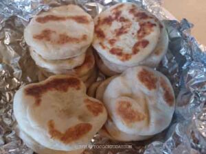 Remove from the heat and brush with more melted ghee or oil if you wish. Continue with the rest of the dough and stack them up as you cook them.