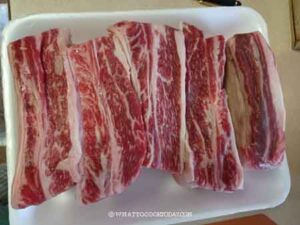 When I bought the ribs, they were large like this. You can have the butcher cut into smaller pieces if you prefer that