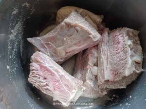 Bring a large pot of water to a boil. Add the pre-soaked ribs and boil for 5 minutes. This part is done to remove any impurities and unpleasant flavor