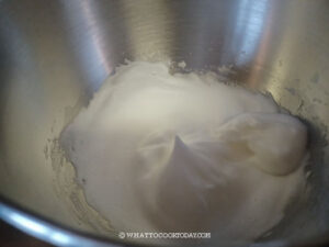 Place the egg whites in a clean mixing bowl. Make sure there is no grease in the bowl and the whisk. Start whipping the egg white on medium speed, speed 4 until it forms bubbles. Add cream of tartar and continue to whip for another minute. Add the sugar and whip until the meringue is firm and bent slightly at the tip