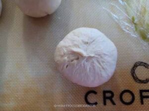 Fold each dough onto itself to form a round dough ball. Keep them covered to prevent them from drying out and let them rest for about 5 minutes before you fill the dough with ganache